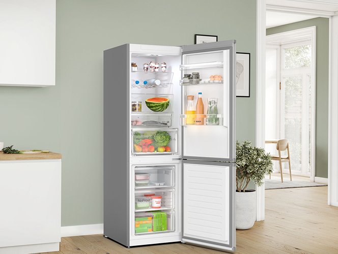 Mit der NoFrost-Technologie gehört manuelles Abtauen der Vergangenheit an, was Ihnen Zeit und Mühe spart. Das Multi Airflow-System gewährleistet eine konstante Temperaturverteilung auf allen Ebenen, wodurch Ihre Lebensmittel unter idealen Bedingungen gelagert werden. Erleben Sie mit Bosch Kühlschränken eine perfekte Kombination aus Frische, Komfort und Energieeffizienz, die Ihren Alltag bereichert.