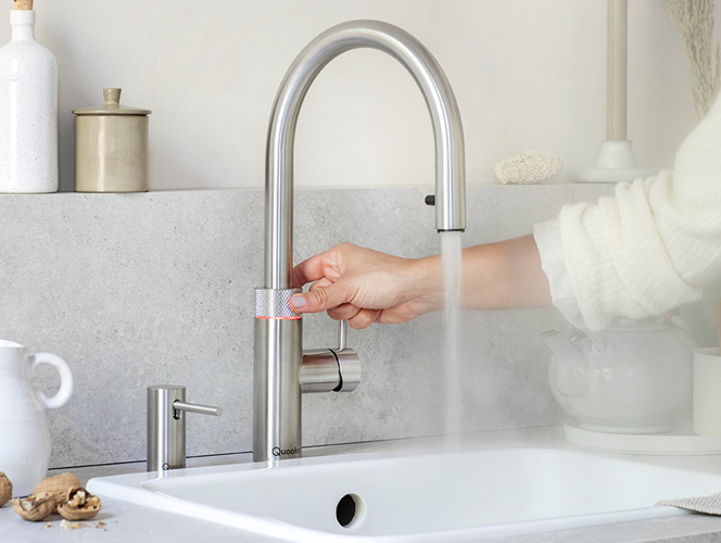 Der Quooker Fusion ist ein optisches Highlight. Er verbindet ein äußerst schlankes Design mit der Funktion alle Wassersorten aus einer Armatur zu erhalten.