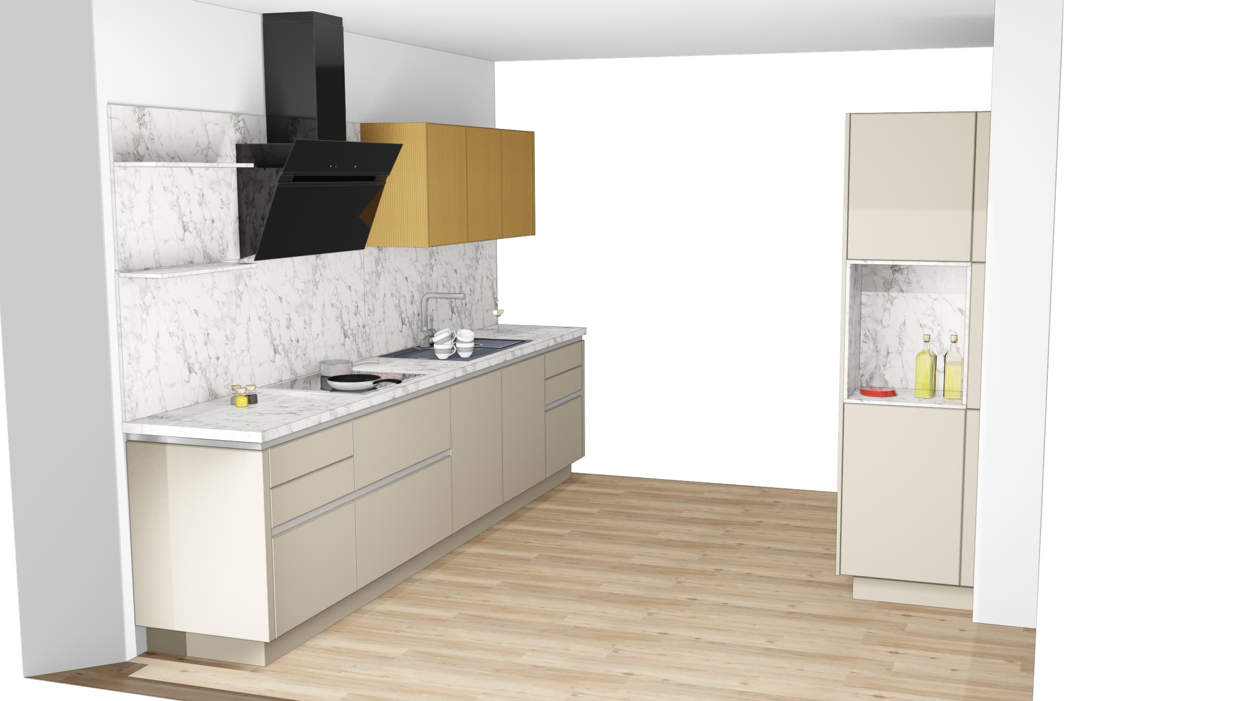 Unterschränke Normale Unterschränke mit Auszug und Schubkästen: Behalten Sie den vollen Überblick über Ihre Utensilien und genießen Sie leichten Zugriff bis in die hinterste Ecke. Kochstellenschrank: Kochen Sie entspannt, denn Töpfe und Pfannen finden direkt unter dem Kochfeld ihren idealen Platz. Vollintegrierter Geschirrspüler: Freuen Sie sich über eine durchgehende, ruhige Frontgestaltung, die Ihre Küche optisch vergrößert und Technik unsichtbar macht.