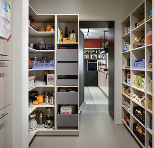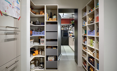 Der Stauraum in den Schränken dient sowohl zum ordentlichen Verräumen von Reinigungsmitteln, Haushaltshelfern wie Staubsauger und Dampfreiniger oder Haushaltswerkzeugen, um gut erreichbar kleine Reparaturen umsetzen zu können. Auch selten genutzte Küchen-Utensilien, das "gute Geschirr", Tischwäsche und saisonale Dekorationen lassen sich im Schranksystem nach Maß sauber und übersichtlich verstauen, ohne im Rest des Hauses zu stören.