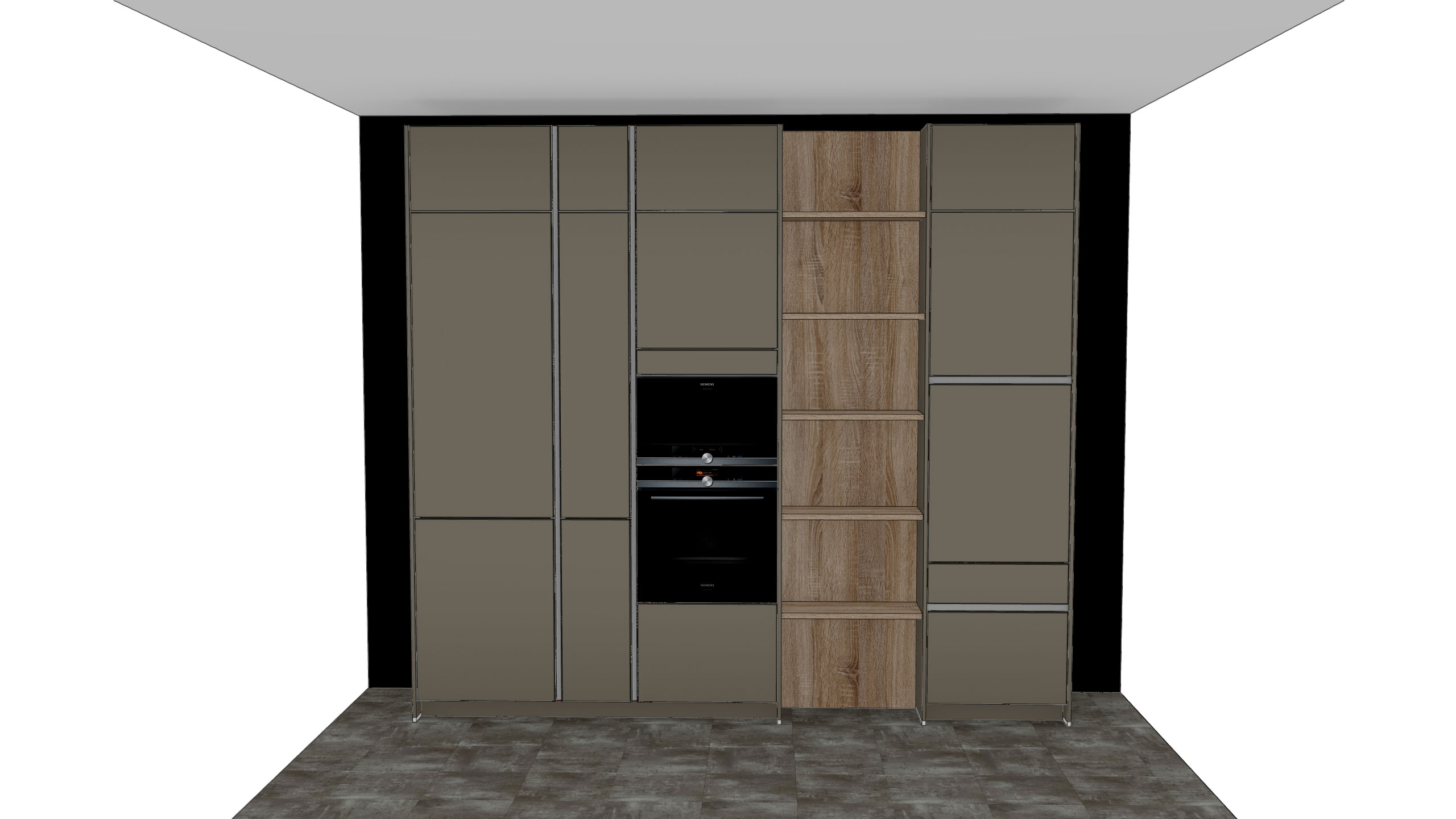 - Normale Schränke: Zusätzlicher Stauraum für Küchenhelfer und -geräte.