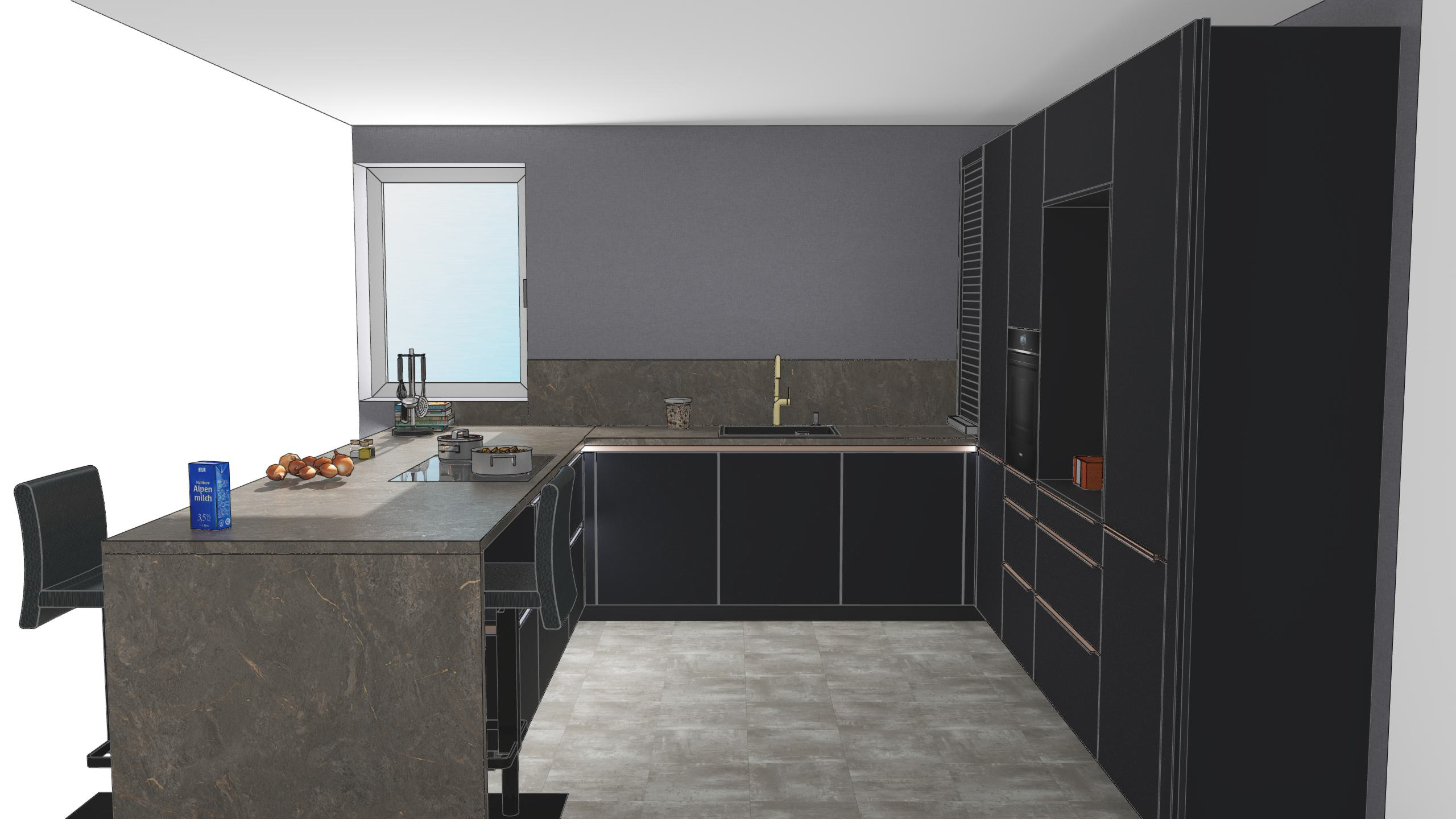 Willkommen in dem trendigen Designküchenmodell Senso von Culineo! Diese U-förmige Küche begeistert nicht nur durch ihr schickes, puristisches Design, sondern bietet auch außergewöhnlichen Komfort und Funktionalität. Die hochwertigen, grifflosen Fronten in mattem Schwarz und die beeindruckende Arbeitsplatte aus Granit Bronze geflammt schaffen Eindrücke sowohl von Eleganz als auch von Moderne. Durchgängige Fronten sorgen für einen harmonischen Look, während die klaren Linien und die großen, einheitlichen Flächen zu einem aufgeräumten Ambiente einladen.