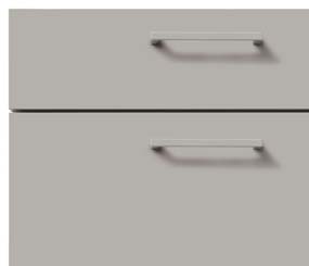 Die vertikalen und horizontalen Graphit Bügelgriffe unterstreichen das schlichte, puristische Design und sorgen für ein modernes Erscheinungsbild. Dunkle Töne setzen stilvolle Akzente und schaffen eine zeitlose Eleganz.
